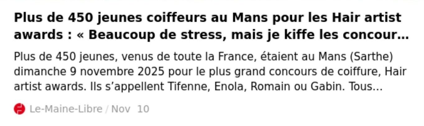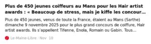 ARTICLES EDF NEW SITE – Presse_Le Maine Libre – Hair Artist Awards 2025Par Raphaël Perrier / 26 novembre 2025