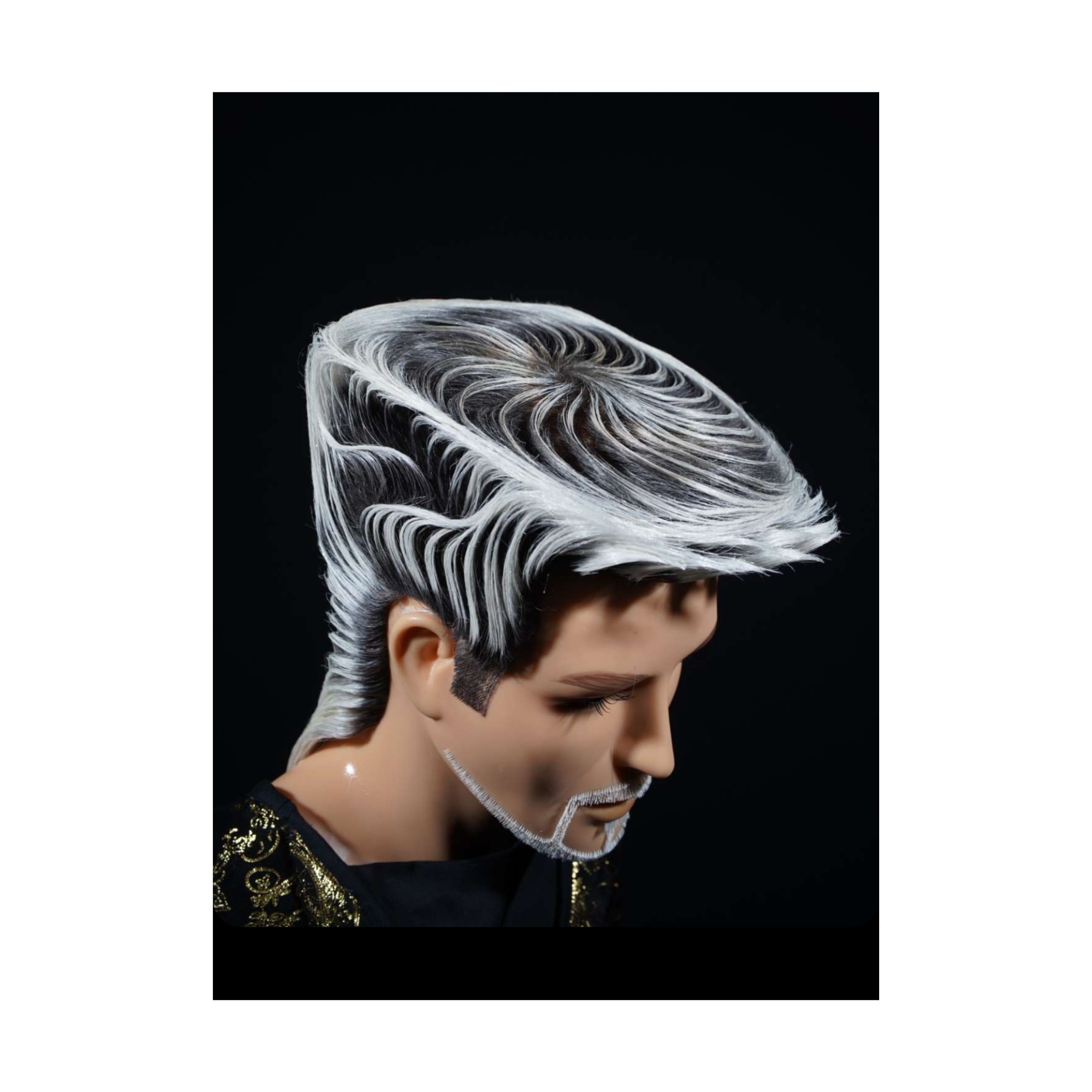 ALEX : Tête homme spécial concours haute densité blanche avec racine noir – 100% poil de yack